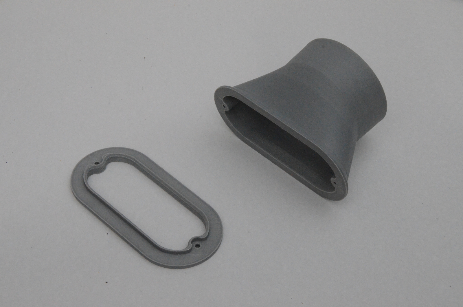 Abluftstutzen mit Freiformflächen von oval auf rund |